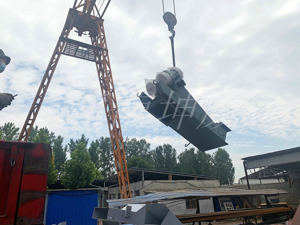 发往安徽的皮带输送机装车发货了 各个部件正在装车 电动滚筒