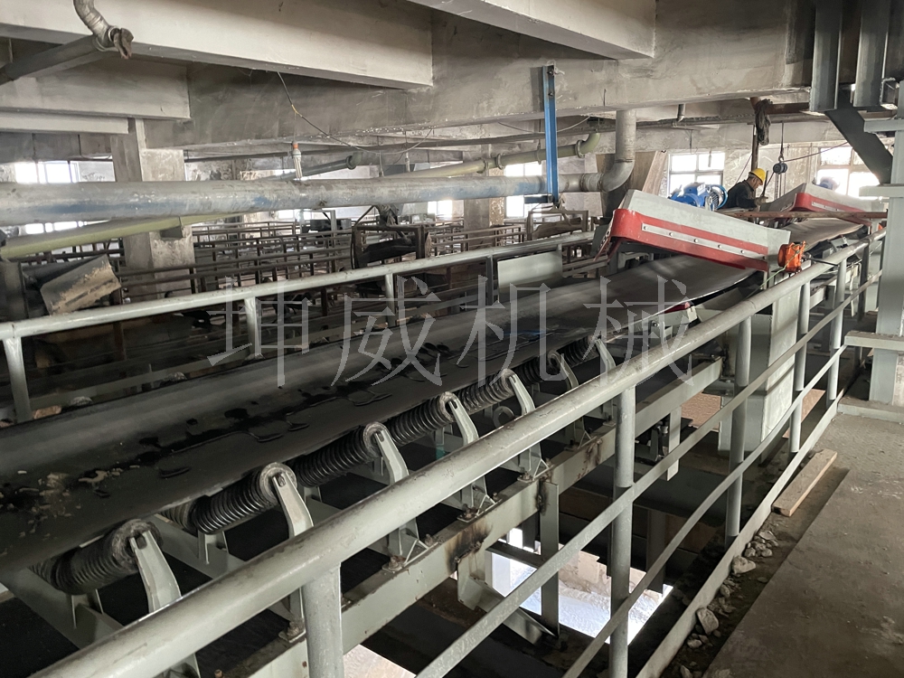 河南坤威机械在湖北黄石的施工现场,该皮带输送机为带犁式卸料器的机型,目前已经安装使用。
