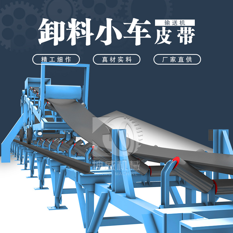 皮带输送机卸料小车在部件组成上和皮带输送机没有太大差异。都是包含滚筒,输送带以及托辊等部分组成。
