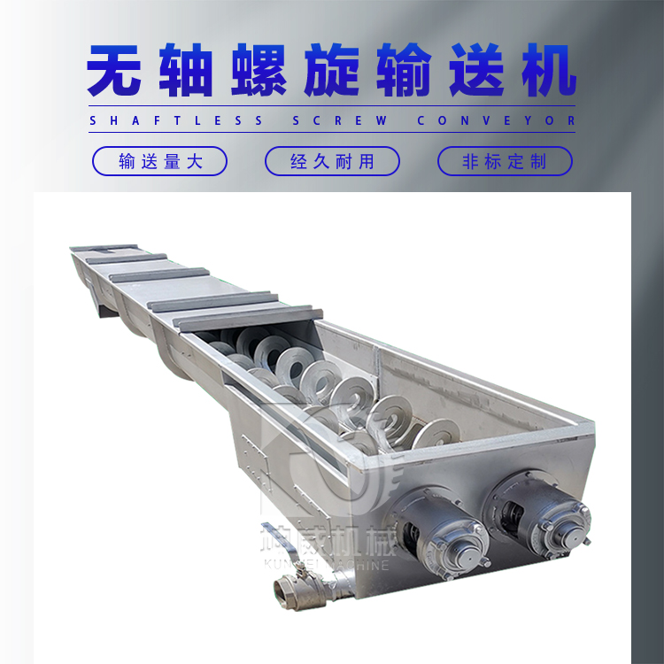 4、无轴螺旋输送机具有良好的环保性能。无轴螺旋输送机选用完全密封的运送机和易于清洁的螺旋表面,保证环境卫生,并保证被运输的物料不受污染或走漏。