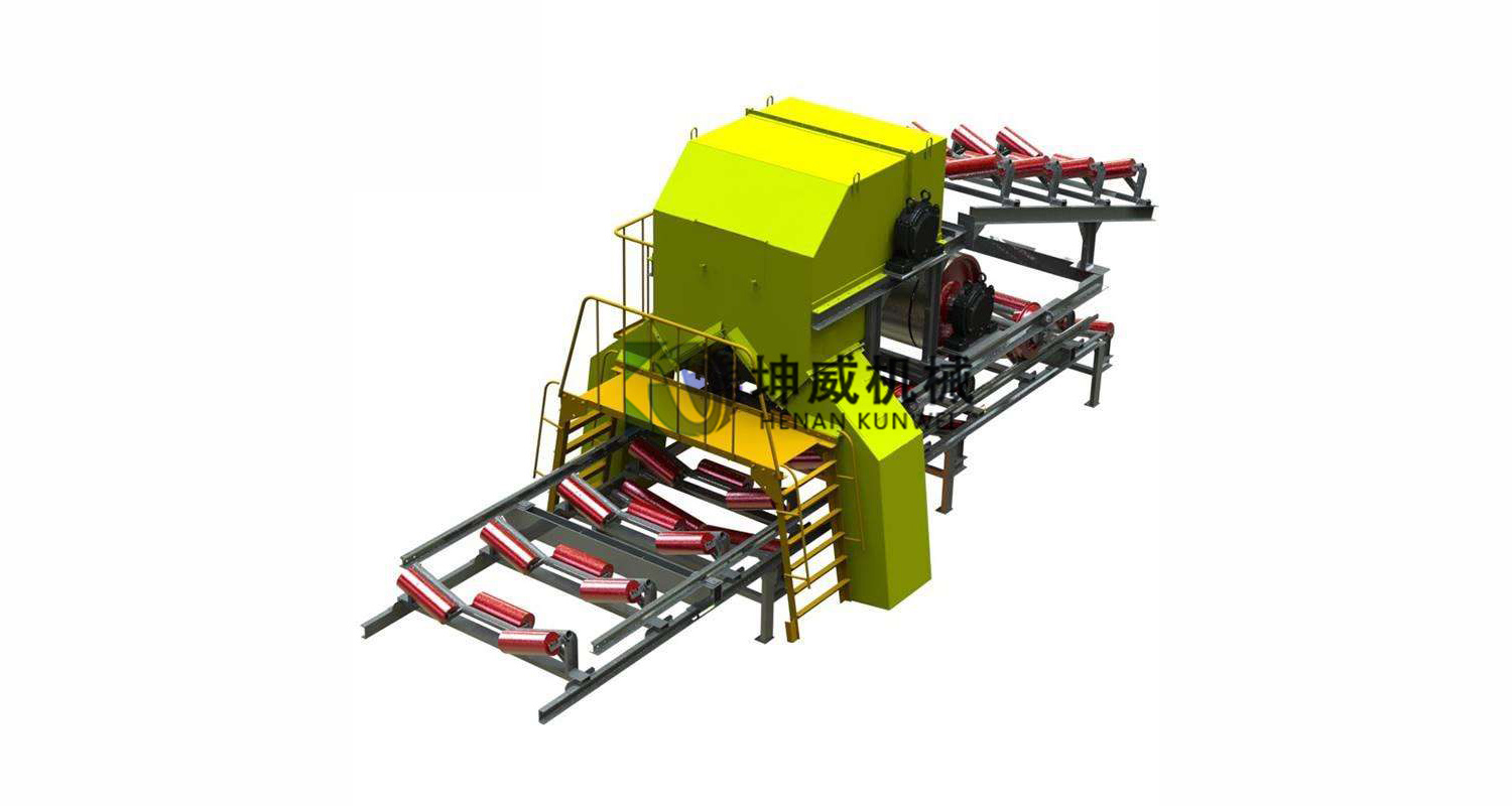 卸料小车:由机架,行走装置,托辊装置,改向装置,出料斗等部件组成,目的是将物料卸至场地内。